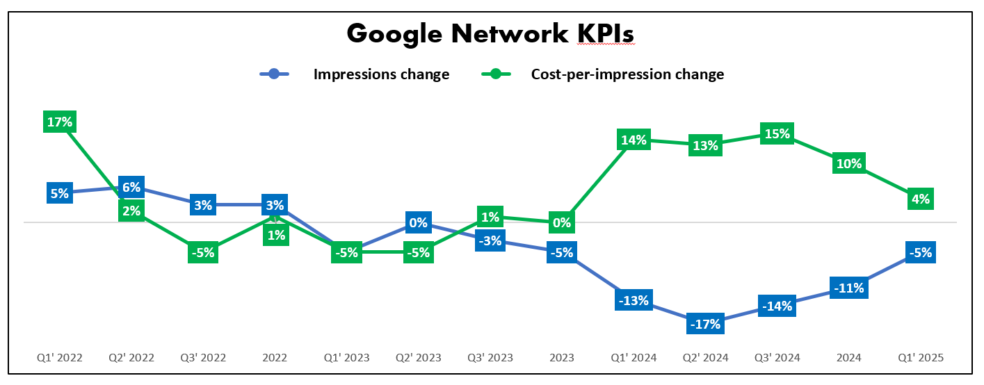 Por lo tanto, según este argumento, si cada vez hay menos impresiones en las páginas web o aplicaciones es porque cada vez hay menos “clicks” en los enlaces de la página de resultados. Además, como hemos podido comprobar en los KPIs de Search y Network, esto cobra aún más sentido.