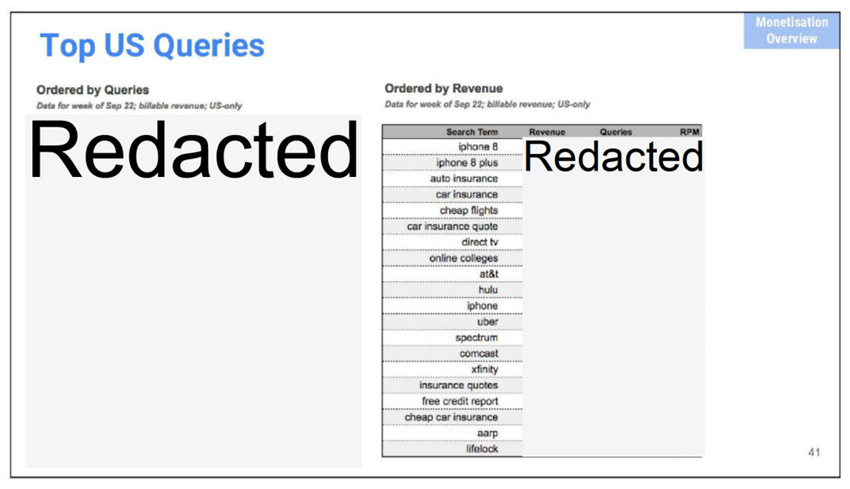 De hecho, en el juicio antimonopolio que está enfrentando Google con el DOJ, se publicó por primera vez en la historia un listado en exclusiva en el que se detallaban que búsquedas eran las que proporcionaban más ingresos a Google Search. Cabe resaltar que es durante el periodo de septiembre de 2018.
