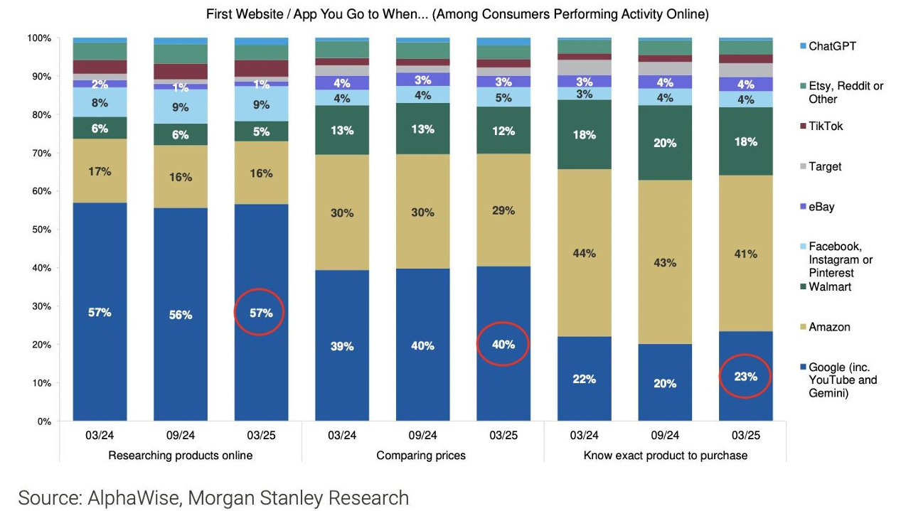 Existe el argumento de que Google Search está siendo desintermediada por este tipo de plataformas desde hace años. Y esto es cierto si partimos de la base de que cuando se lanzó Google Search hace más de 20 años todas las búsquedas se realizaban en el buscador. Actualmente, servicios como Booking, Airbnb, Spotify, Netflix o Amazon se han convertido en buscadores verticales en su respectivo nicho. Estas plataformas no solo proporcionan resultados de búsqueda, sino que integran todo el proceso: descubrimiento, comparación, compra y, en muchos casos, experiencia postventa.
