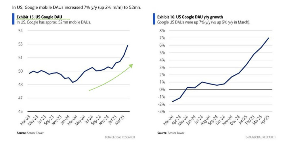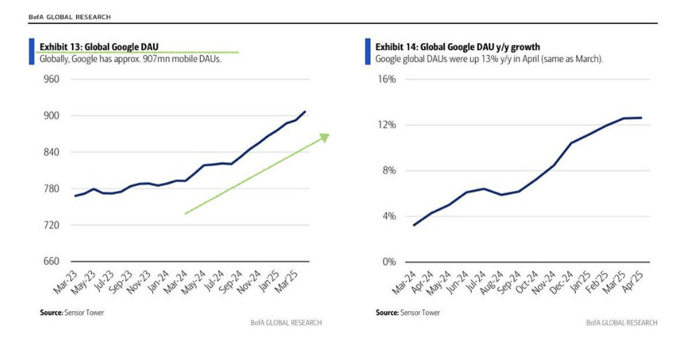 De hecho, Google Search sigue siendo muy relevante y los usuarios no paran de crecer como podemos comprobar en estas gráficas ofrecidas por Bank of America (BofA):